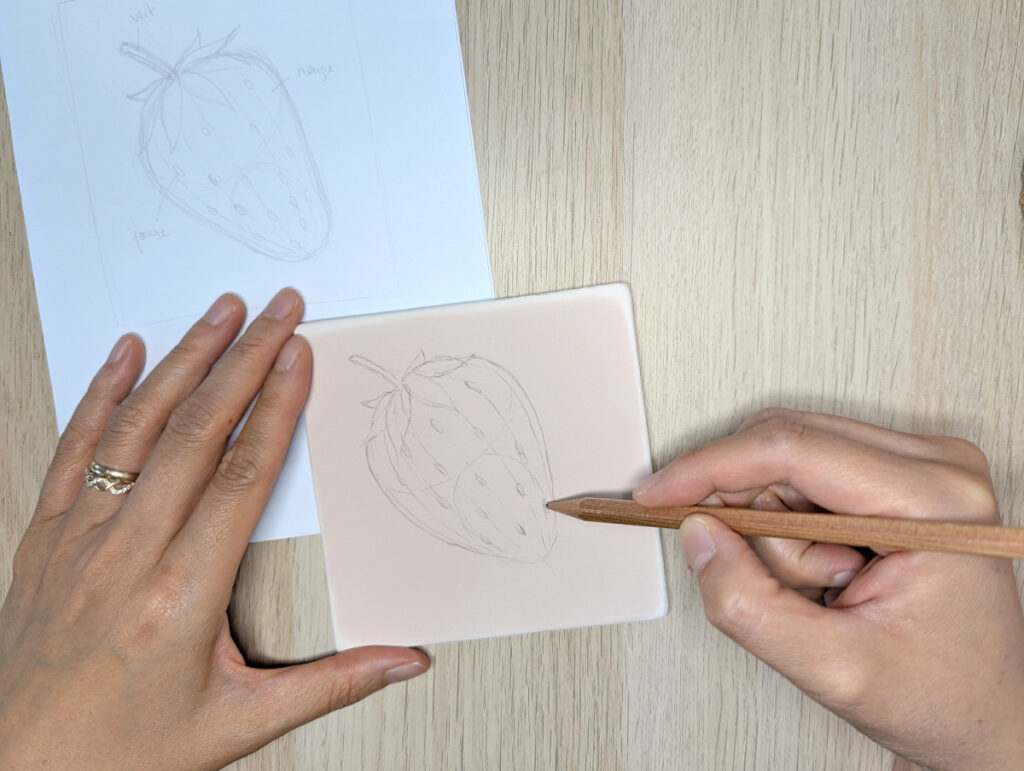 De plus, même si le crayon brûle à la cuisson, tu ne peux pas le gommer. Si tu souhaites modifier ton brouillon, tu n’auras pas d’autres choix que de le charger davantage ce qui peut le rendre encore plus brouillon!